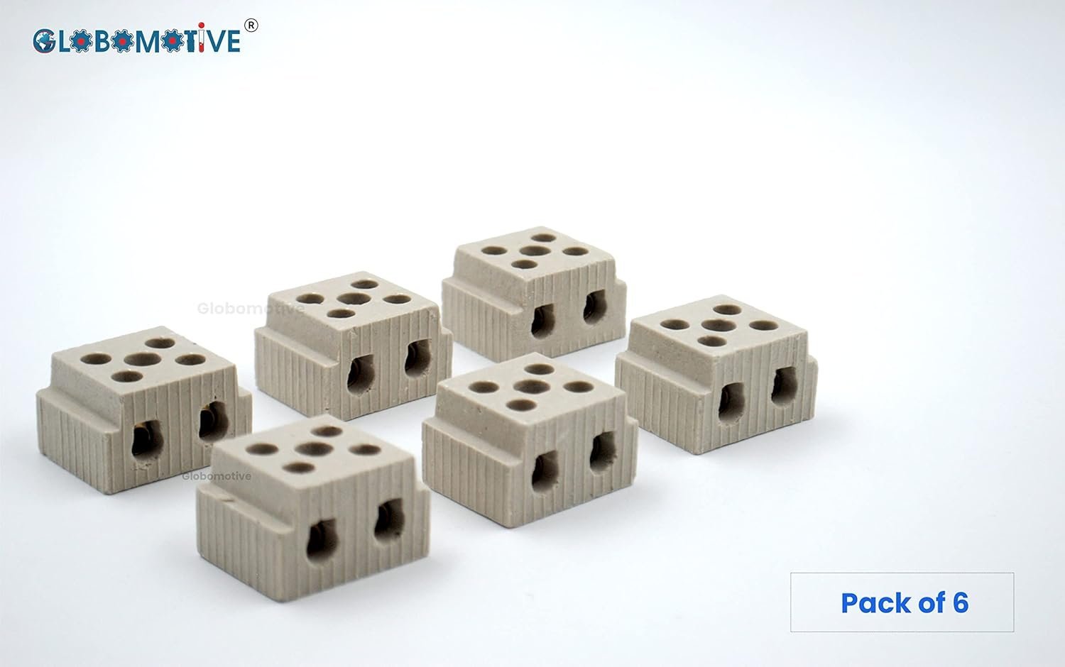 GLOBOMOTIVE 2 Way Porcelain Ceramics Terminal Blocks- 15 A 230 V High Temperature Connectors for Electric Wire Cable, Pack of 6