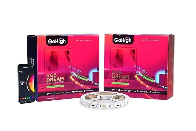 Be the first to review “GoHigh Smart RGB LED Strip Lights 5M × 4| Group & Sync via App | WiFi & Bluetooth | Music Sync | 15M+ Colors | LED for Bedroom, Gaming & Home Decor | 1Year Warranty |” Cancel reply