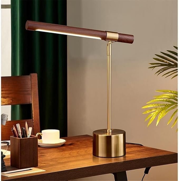 Luxury Table Lamp with Brass & Walnut Wood Finish, Modern Adjustable LED Desk Light for Bedroom, Study & Office, Elegant Decorative Lighting for Home Décor