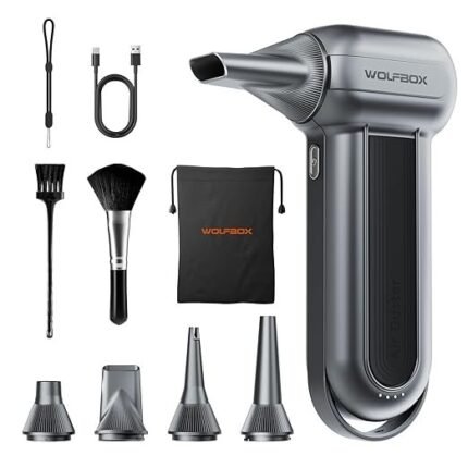 WOLFBOX MF100 Electric Air Duster – 150,000 RPM Rechargeable Cordless Blower, Brushless Motor, 3-Speed Adjustable for Cleaning Computers, Keyboards, Cars, Homes, and Outdoor Spaces