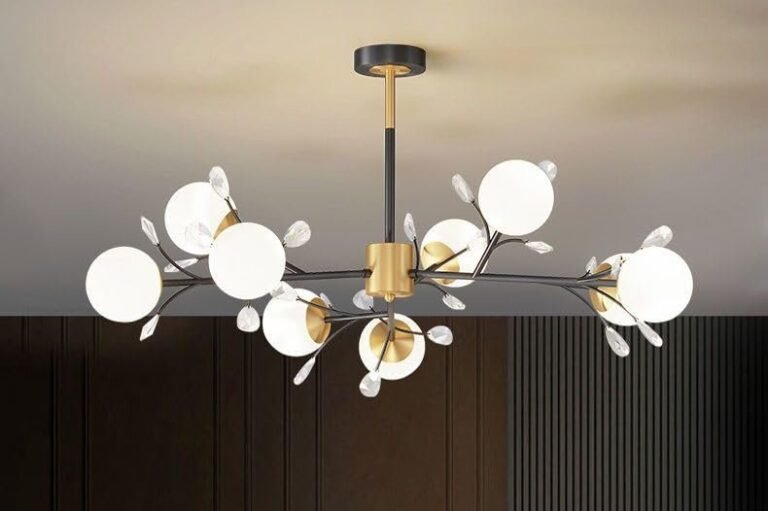 9-Light Globe Branch Chandelier | Modern Gold & Black Ceiling Light for Living Room, Dining & Bedroom | Frosted Glass Shades with Crystal Accents | E27 Bulb Compatible | Adjustable Rod